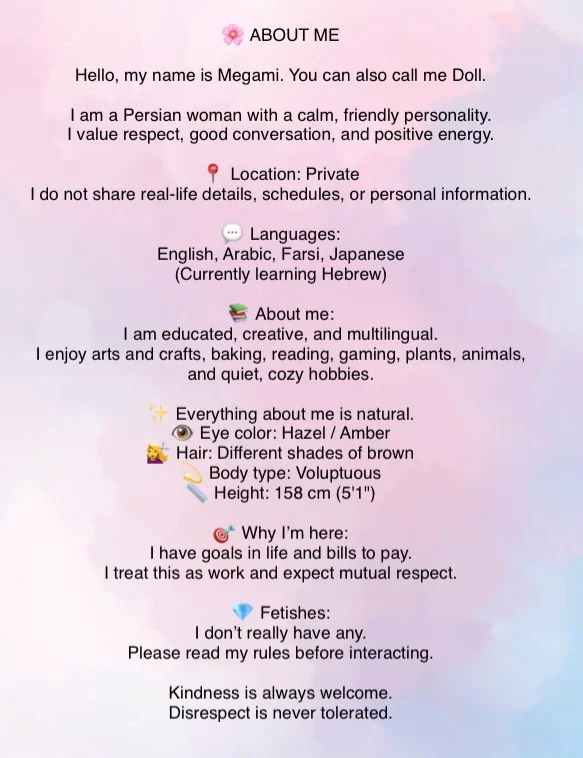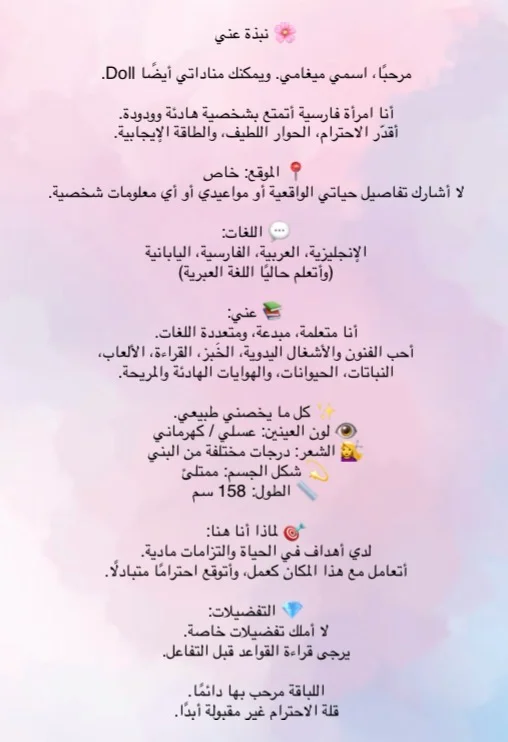 Spoken Languages: English, Arabic, Farsi, Japanese, and learning Hebrew. I'd love to learn Korean as well. I'm a polyglot.